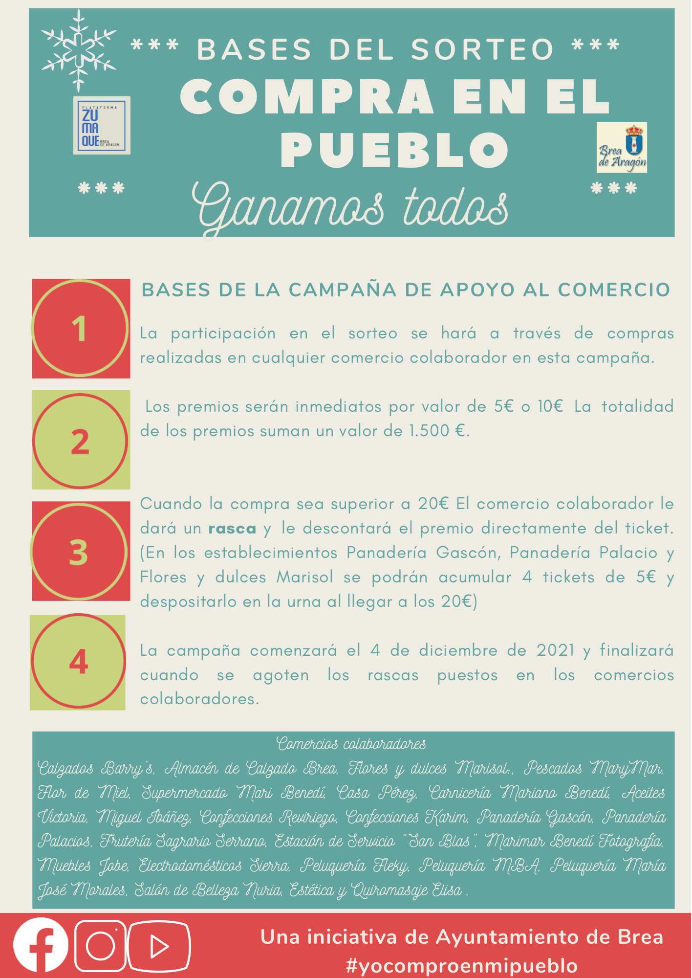 A partir del 4 de diciembre, por cada compra superior a 20€ en los comercios locales adheridos, recibirás un rasca con el que puedes ganar un descuento de 5€ o 10€. ¡Hay 1500€ en premios! Bases de la campaña de apoyo al comercio local