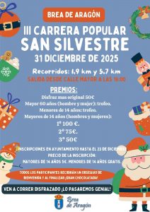 El próximo día 31 de diciembre de 2025 el Ayuntamiento de Brea de Aragón organizará la carrera popular “III San Silvestre Breana”.