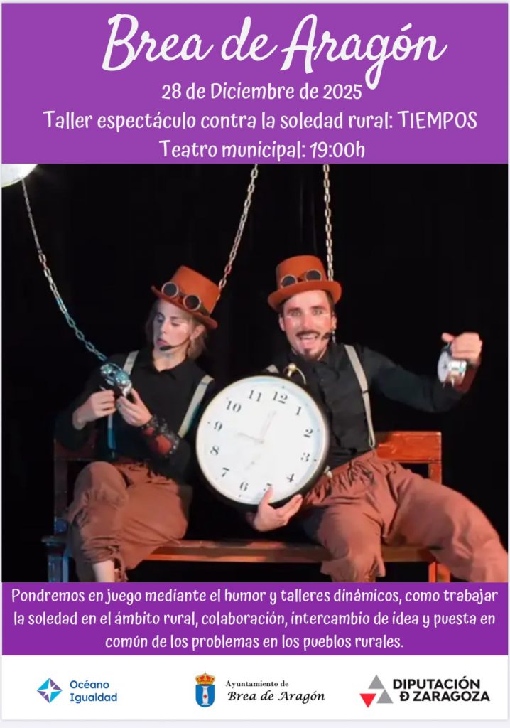 El domingo 28 de diciembre de 2025 se realizará en el Teatro municipal a las 19:00 horas un taller espectáculo contra la soledad rural. Se pondrán en juego mediante el humor y talleres dinámicos cómo trabajar la soledad en el ámbito rural, colaboración, intercambio de ideas y propuestas en común de los problemas de las zonas rurales.