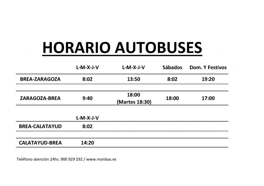 Desde el día 19 de enero de 2026, los horarios de autobús de las líneas a Zaragoza y Calatayud son los siguientes: