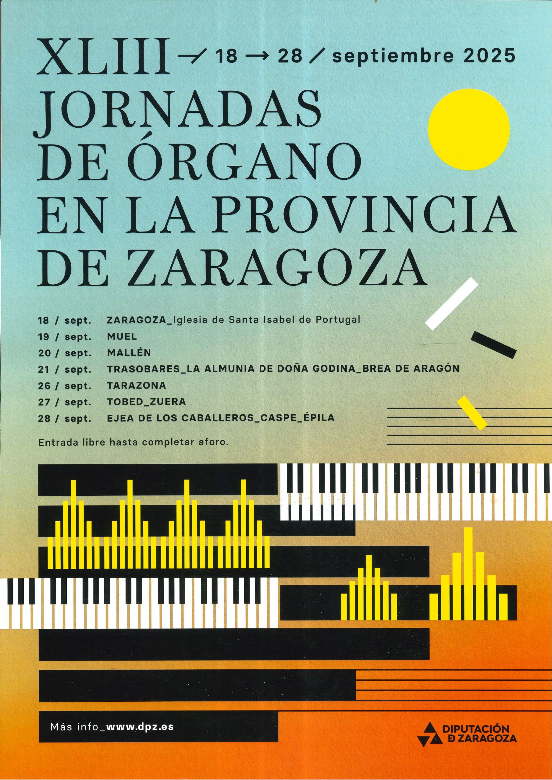 El día 21 de septiembre a las 19:00 horas se celebrará en la Iglesia Parroquial de Santa Ana un concierto de órgano a cargo del organista Benantzi Bilbao. Este acto se incluye dentro de las XLIII Jornadas de Órgano en la Provincia de Zaragoza organizadas por la Diputación Provincial de...
