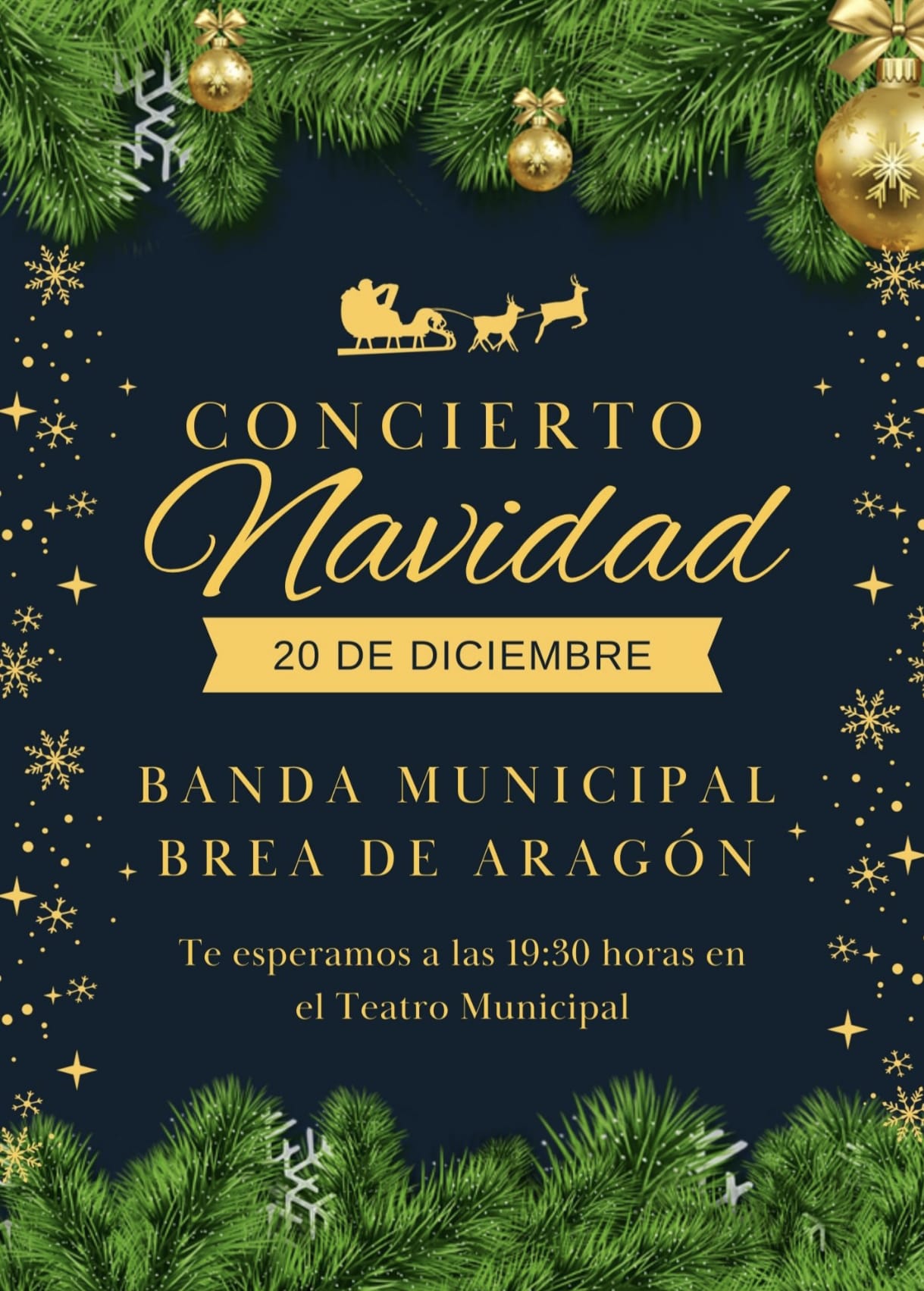 El sábado 20 de diciembre a las 19:30 horas se celebrará en el Teatro el concierto de Navidad de la banda municipal de Brea de Aragón. La entrada es libre hasta completar aforo.